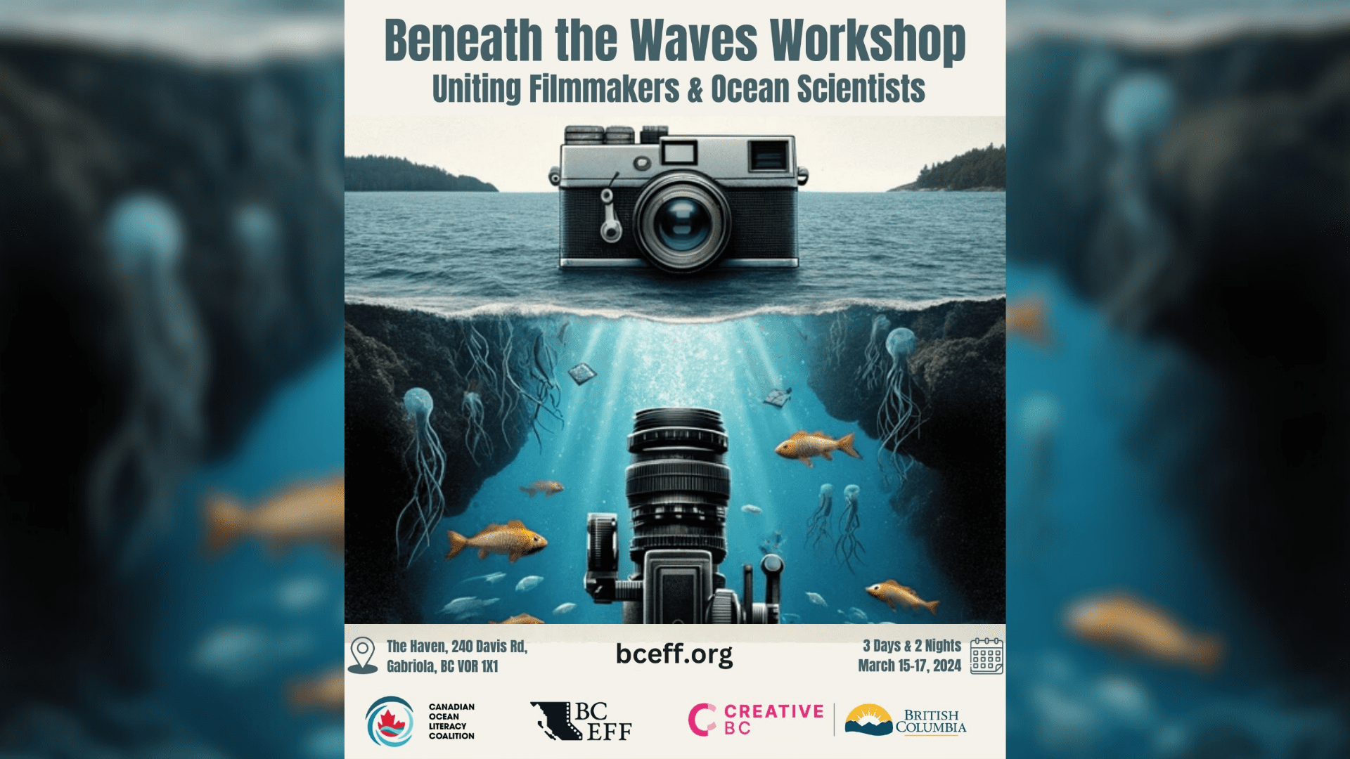 COLC is happy to collaborate with The British Columbia Environmental Film Festival (BCEFF) and Creative BC, in co-organizing a 3 day workshop from March 15-17, bringing together 25 filmmakers and ocean scientists to explore and co-design stories with impact!