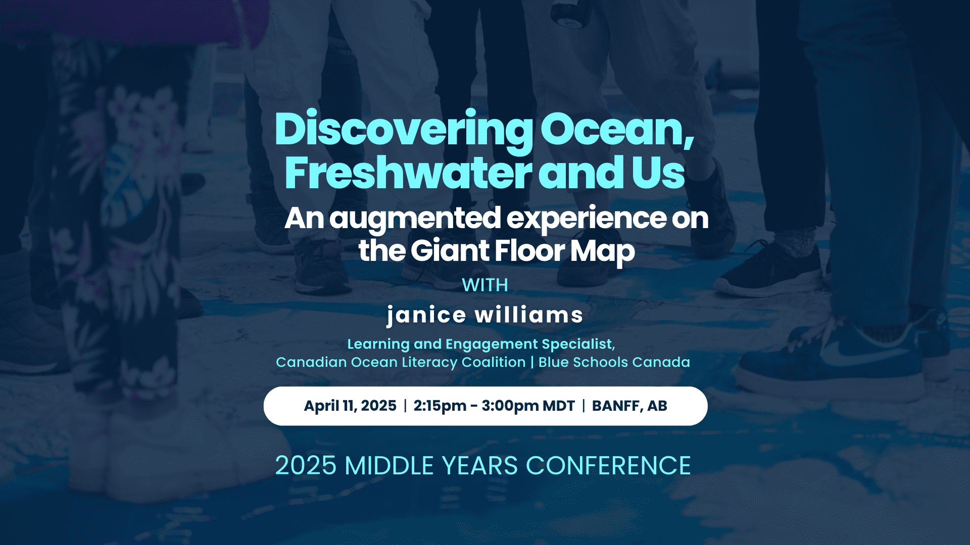 Imagine walking on a giant map, tracing the local river to the ocean; what questions would you—or your students, ask about the places you observe and the peoples who live there? Join janice williams in this interactive experience as we discover the connection between ourselves and the water surrounding and sustaining us. This life-sized cartographic lens of the giant Ocean, Freshwater and Us map inspires systemic thinking, helping all who explore the map to strengthen their connection to coastal areas, the ocean, inland waterways and watersheds in Canada. The giant floor map, in combination with the augmented reality experience, enhances classroom learning, enabling students to discover aquatic ecosystems through multi-sensory and self-directed inquiry.