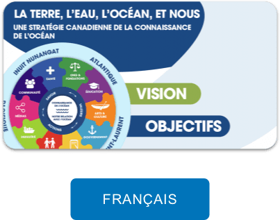 La terre, l’eau, l’océan et nous : Une stratégie canadienne de la connaissance de l’océan a été lancée le 16 mars 2021. La Stratégie nationale a été codéveloppée par et pour les Canadiens dans le cadre d’un processus d’étude et d’engagement ascendant, régional et communautaire mené à travers le pays, auquel plus de 3 000 Canadiens et 400 organisations ont participé.